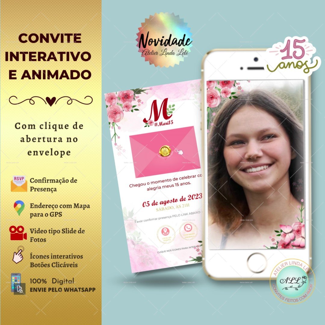 Além de lindo, este convite é extremamente elegante, moderno e prático. É uma excelente escolha para convidar seus amigos e familiares. E com ele você evita gastos com frete e impressões.