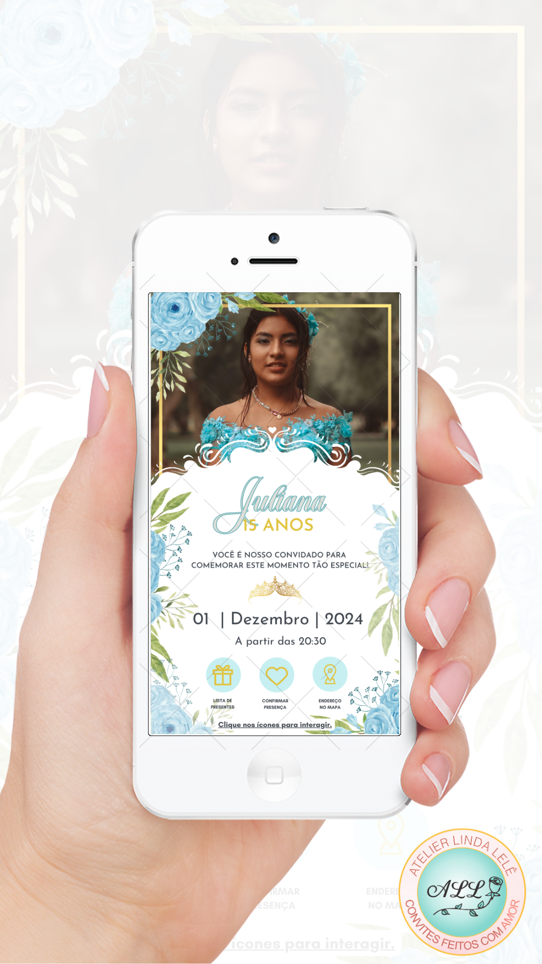 Basta um toque no ícone do seu convite interativo e o convidado terá acesso as informações que você colocou na lista.