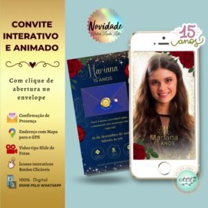Além de lindo, este convite é extremamente elegante, moderno e prático. É uma excelente escolha para convidar seus amigos e familiares. E com ele você evita gastos com frete e impressões.